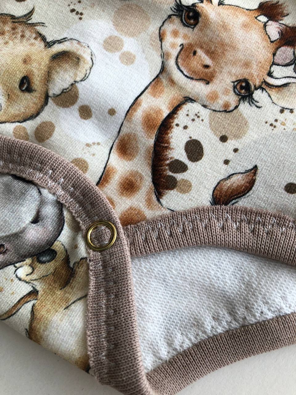 🌿 Šūts no kokvilnas trikotāžas (95% kokvilna, 5% elastāns), ar OEKO-TEX® Standard 100 sertifikātu — droši mazuļa maigajai ādai.