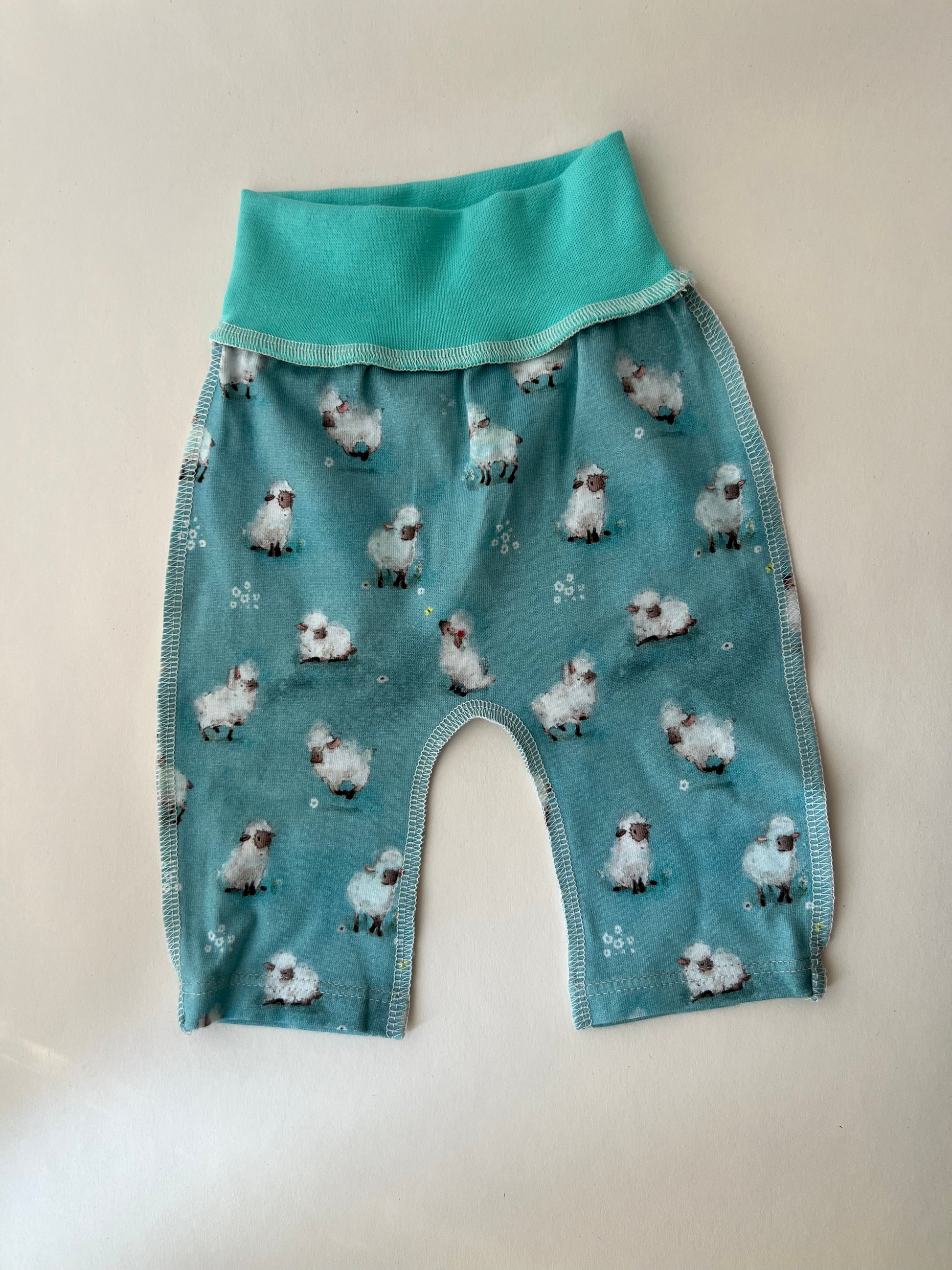 Komplekts “Draudzīgās aitiņas” 44–46 — jaciņa ar atvērtām piedurknēm un biksītes ar atvērtām kājiņām, šuvumi uz āru