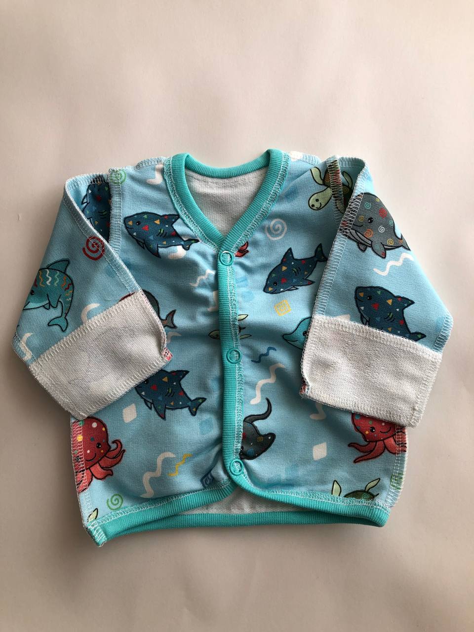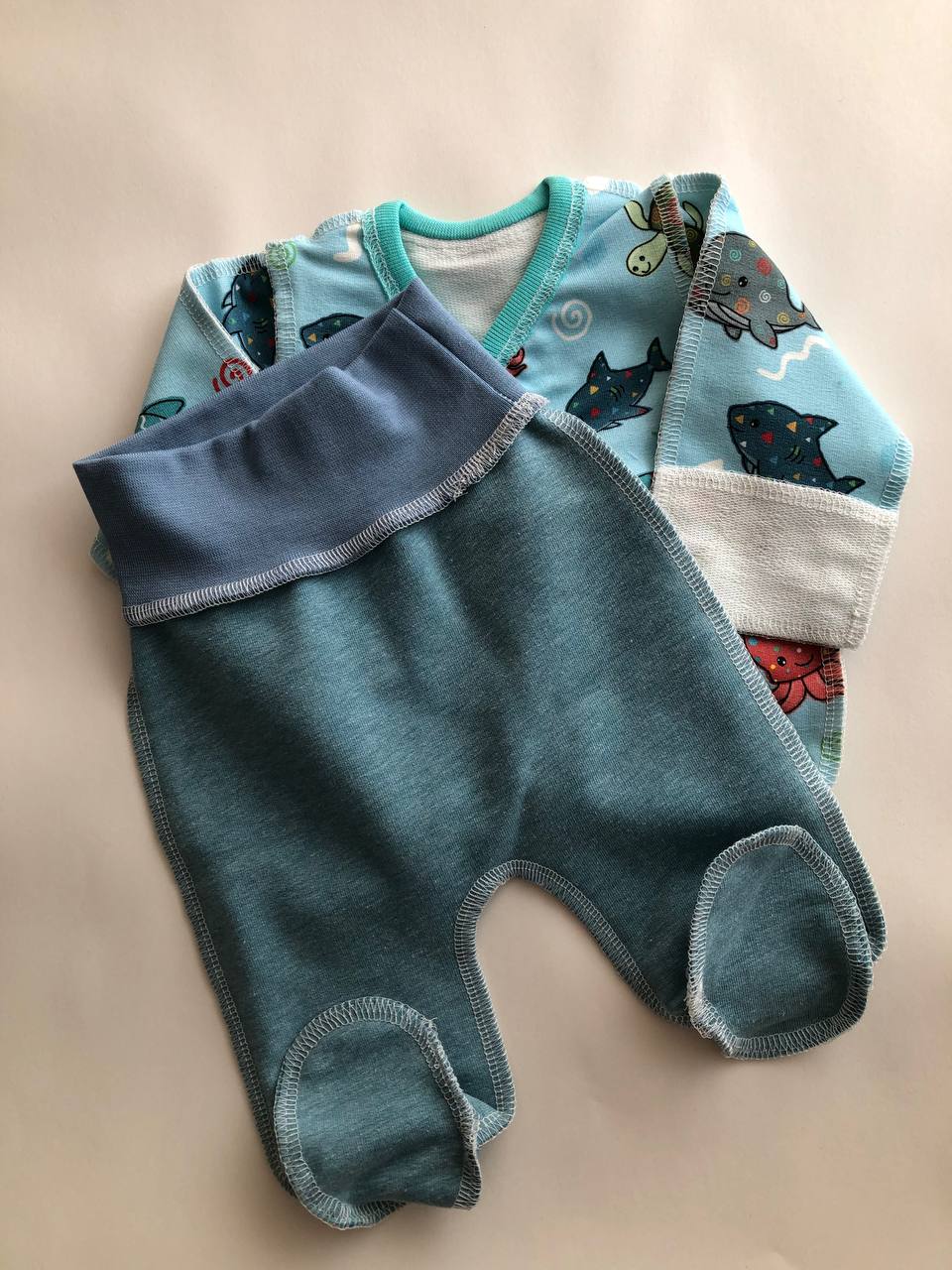 Komplektiņš “Jūras pasaka” 46 — krekliņš un bikses, aizvērtas kājiņas, šuvumi uz āru