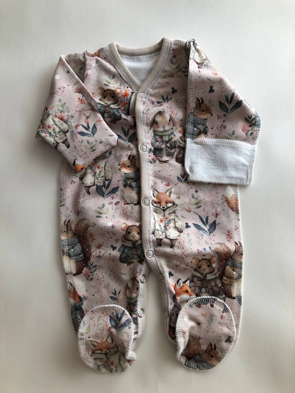 – Spiedpogas visā garumā — ērti pārģērbšanai un autiņbiksīšu maiņai.