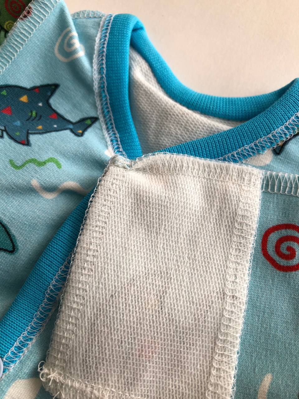 – Spiedpogas visā garumā — ērti pārģērbšanai un autiņbiksīšu maiņai.